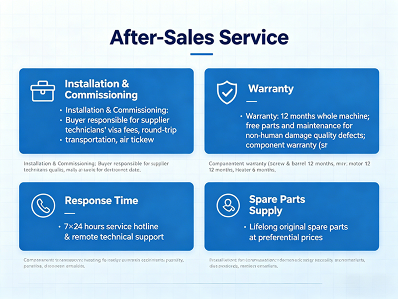 Som en fabrik med lång erfarenhet av internationell handel följer vi konsekvent ett kärnfokus på kvalitet och ett teknikdrivet tillvägagångssätt. Våra plastmaskiner åtnjuter inte bara ett gott rykte på den inhemska marknaden utan lyser också starkt på den internationella marknaden, med stora kvantiteter av våra produkter som exporteras till länder över hela världen varje år. Under åren har vi förtjänat det utbredda förtroendet från globala kunder tack vare vår stabila utrustningsprestanda och omfattande eftermarknadsservice, vilket gör oss till en långsiktig partner som du kan lita på.