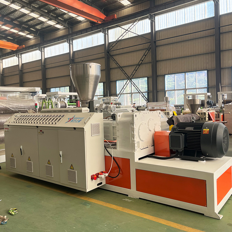 Koniska dubbelskruvextrudrar, utrustade med olika specifikationer av formar och hjälputrustning tillverkad avQingdao Eaststar Plastic Machinery Co., Ltd.,kan direkt bearbeta PVC-pulver till plastprodukter såsom rör, ark och profiler.