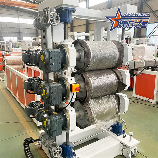 Formning och kylning: En kalander med tre valsar utför tjockleksformning och ytbehandling på arken. Kylsystemet kyler snabbt arken till under 60 ℃ för att förhindra deformation.