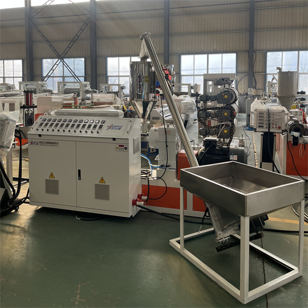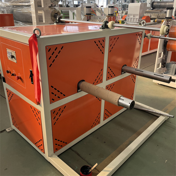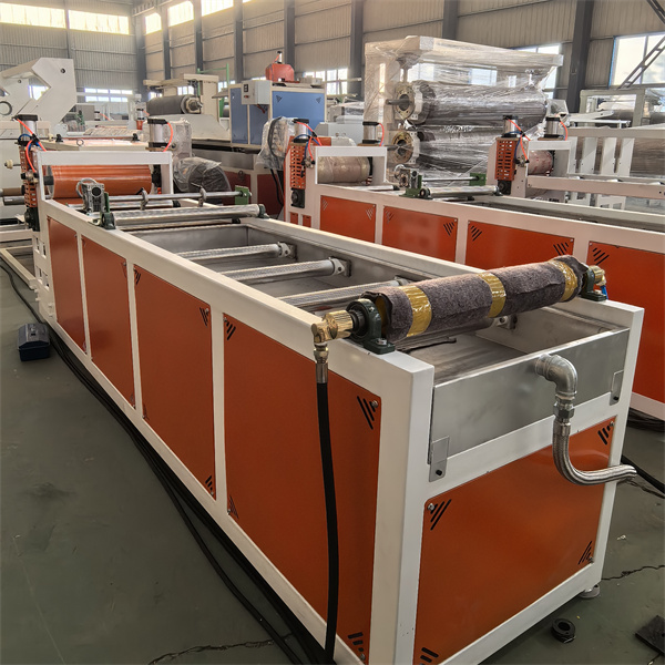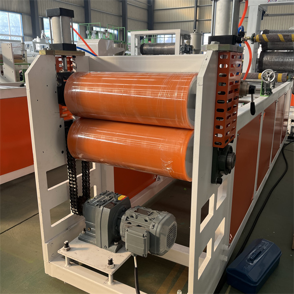 TPU-plåtformen använder ett förkromat, spegelbehandlat T-matrishuvud. Flödesvägsdesignen är symmetrisk och jämn, utan döda punkter, vilket säkerställer jämn smältfördelning. Munstyckets läppgap är finjusterbart (med en noggrannhet på 0,01 mm), och rymmer plåttjocklekar från 0,1 till 5 mm. TPU-plåtextrudermaskinen är utrustad med en kyl- och formningsenhet med tre rullar. Rullytan är spegelpolerad och kylvattentemperaturen styrs av ett konstant temperatursystem. Detta möjliggör snabb kylning och formning samtidigt som den säkerställer en slät, repfri yta. Plåtens planhet och tjocklekstolerans (inom ±0,03 mm) styrs av trycket mellan rullarna.